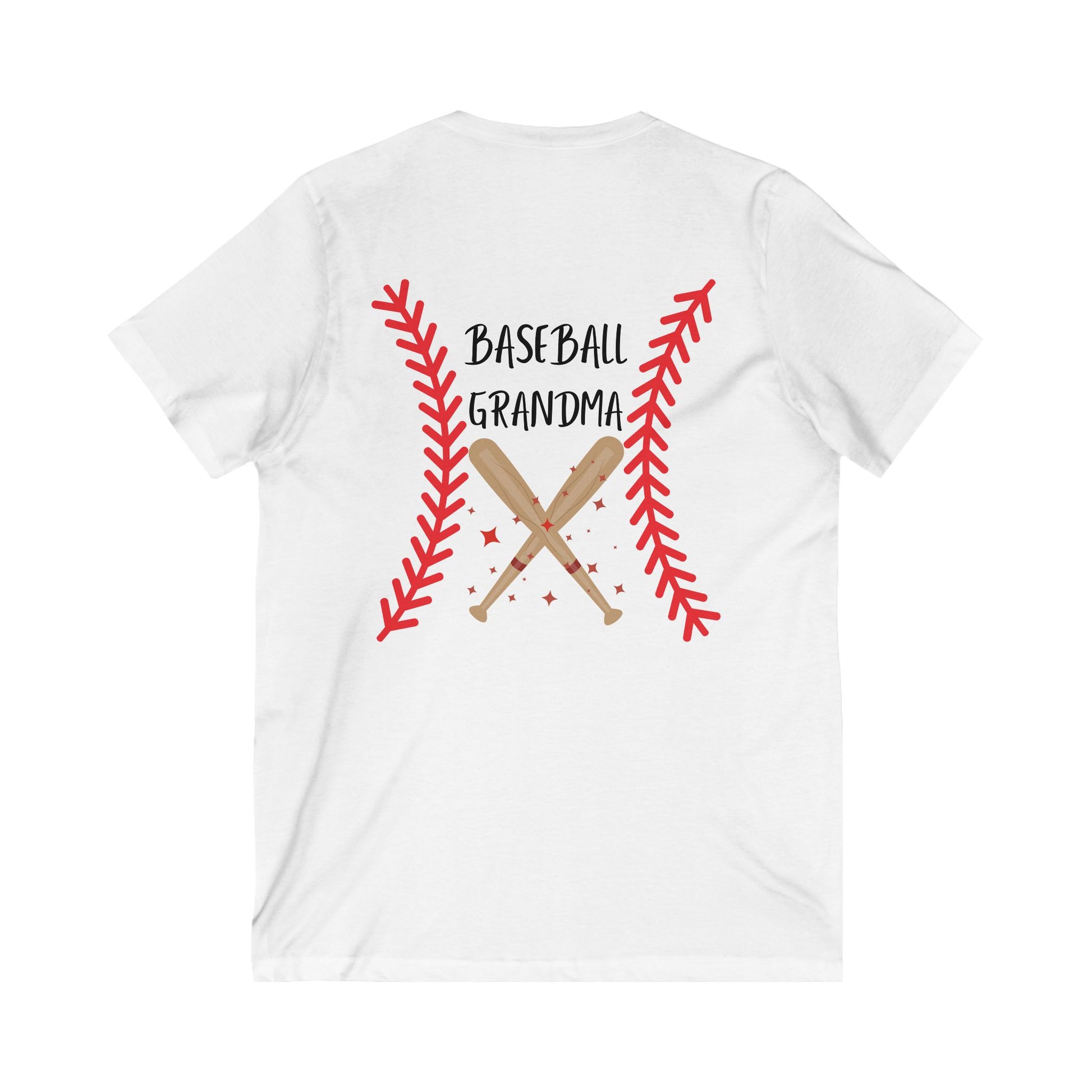 Customizable baseball grandma t-shirt with a number on the front, perfect for any baseball enthusiast. The lightweight fabric and V-neckline offer a comfortable and stylish wearing experience. Ideal for grandma's looking to show support for their favorite baseball player or team!