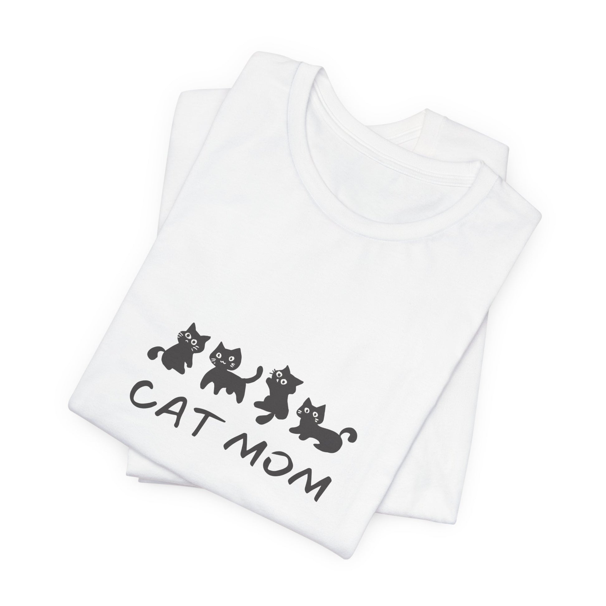 A cute and cozy cat mom t-shirt perfect for cat lovers. This t-shirt gives off a warm and loving vibe, making it a great addition to a casual outfit for running errands or lounging at home. Ideal for cat moms who want to show off their love for their furry friends.