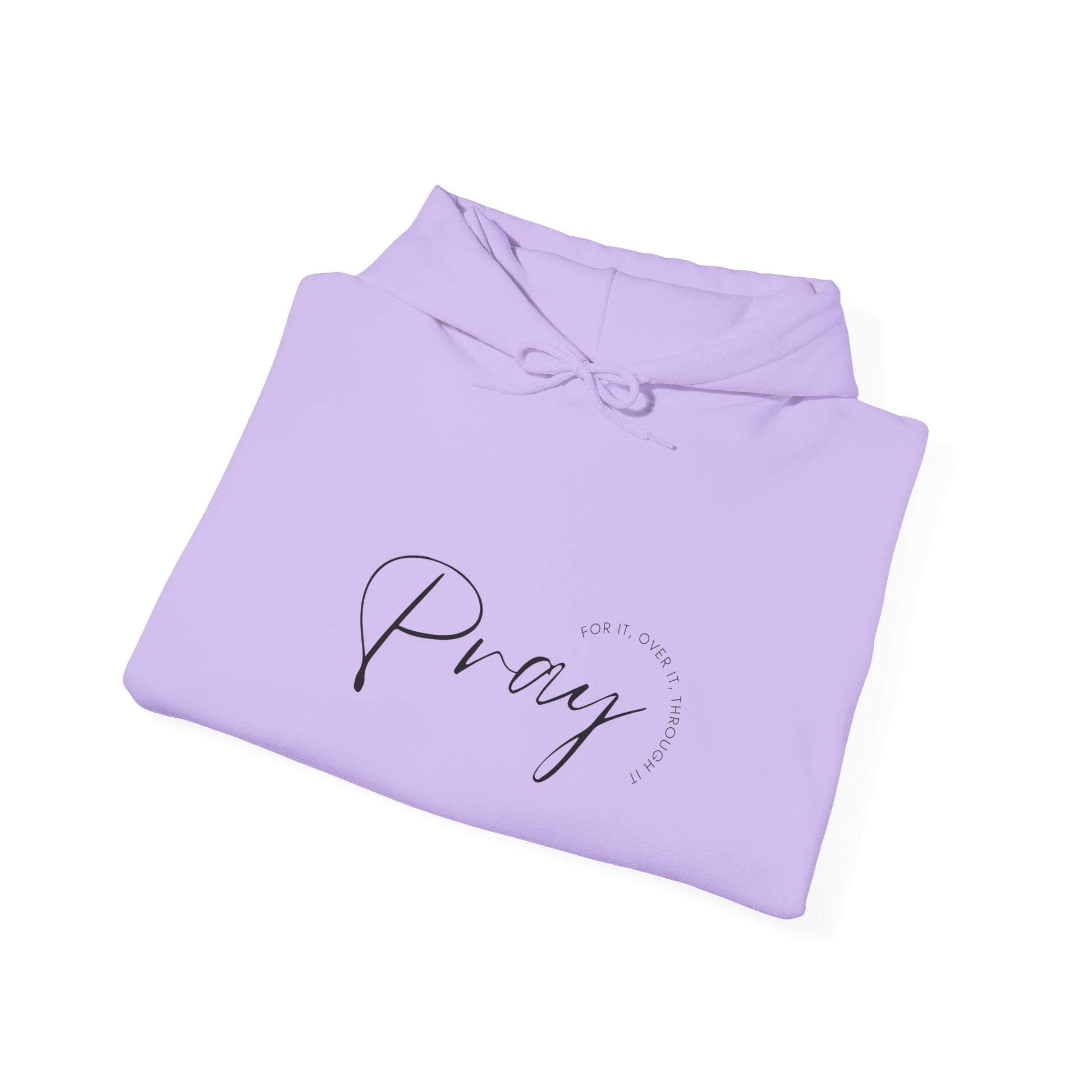 Stay warm and comfortable with this 'Pray over it, for it, through it' hoodie. Perfect for cozy nights at home or casual outings. Relevant for those who appreciate spiritual and motivational designs. Ideal for gift-giving during special occasions like Christmas, birthdays, or spiritual gatherings.