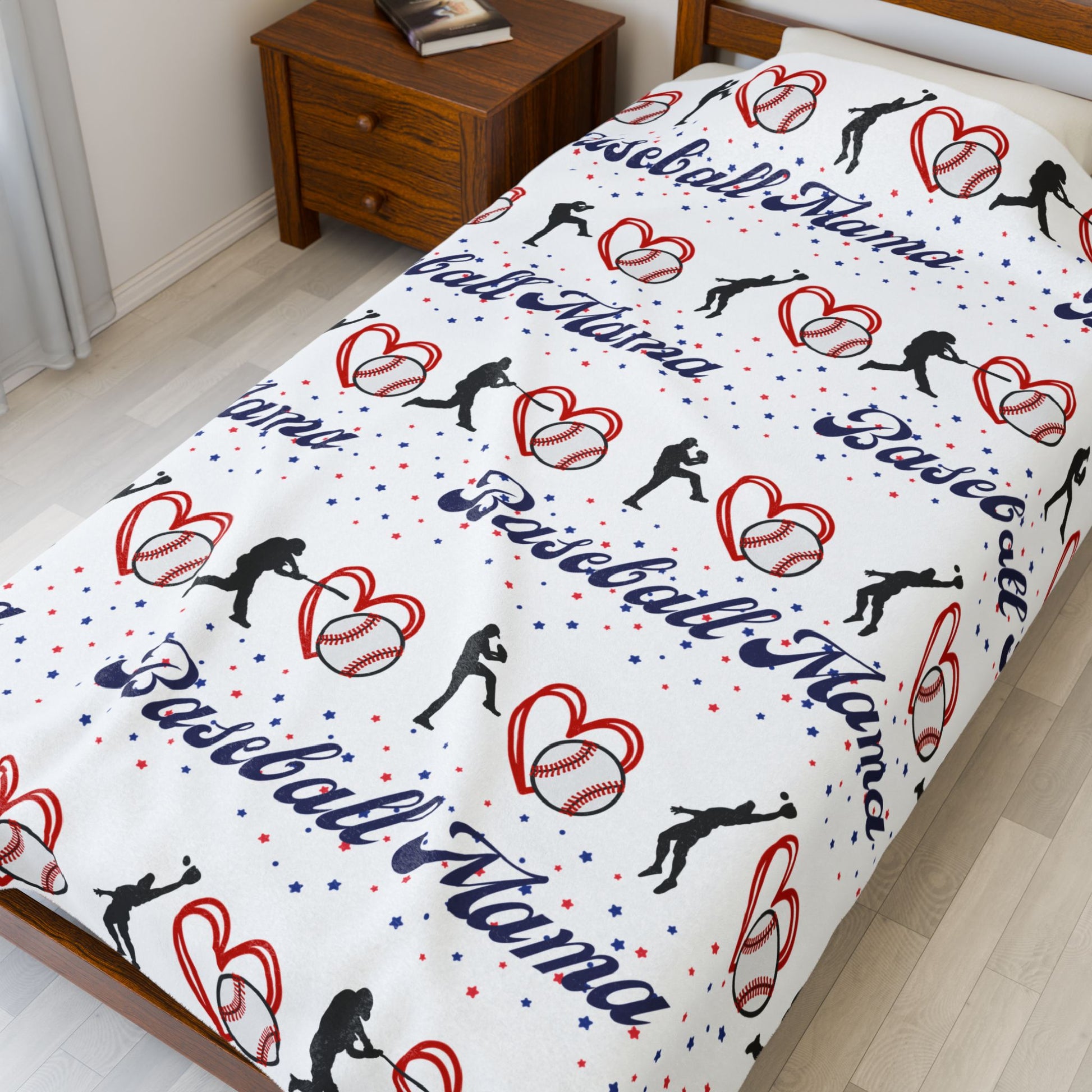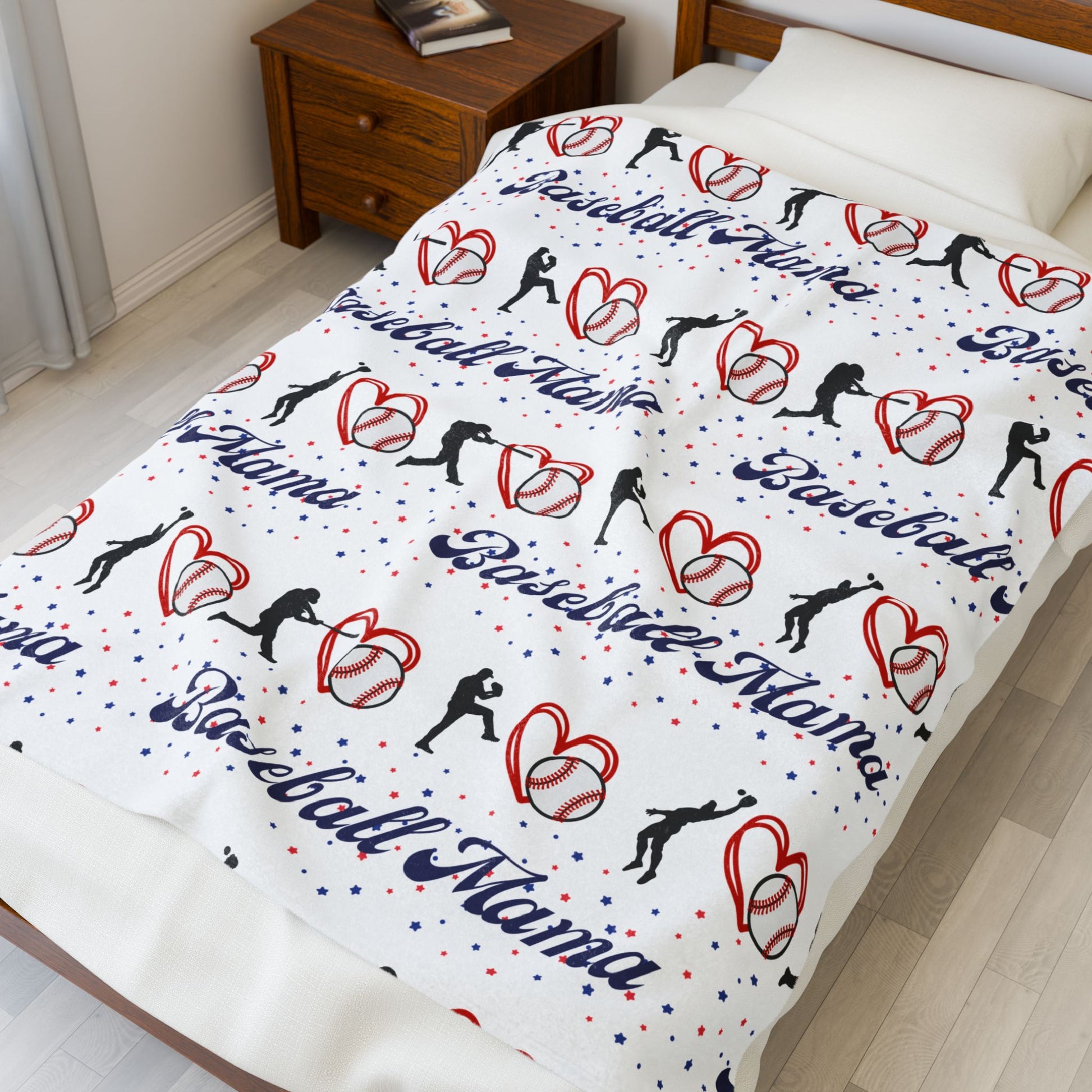 Velveteen Plush Blanket - Cozy Baseball Mama